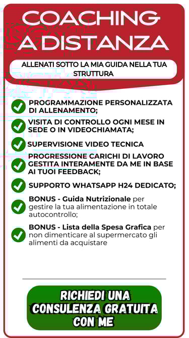Sapere che c'è qualcuno che ti aspetta e monitora i tuoi progressi, ti rende più responsabile. Ti aiuterò a rimanere costante con il tuo allenamento, riducendo la tentazione di saltare sessioni o mollare. Sapere che stai seguendo un percorso corretto ti darà più fiducia in te stesso e arriveremo alla meta.