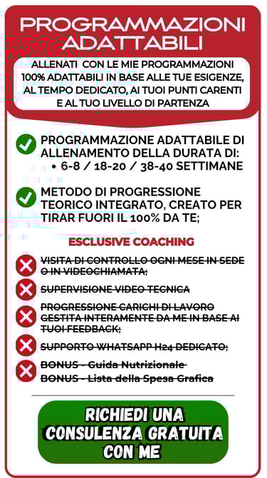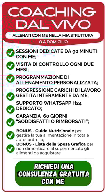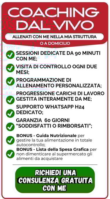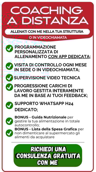 Scrivimi su WhatsApp per fissare una prima consulenza video conoscitiva gratuita senza impegno in cui valuteremo il tuo stile di vita, i tuoi obiettivi, ti verrà illustrato il percorso che andrai a svolgere, insieme ai costi e alle modalità;