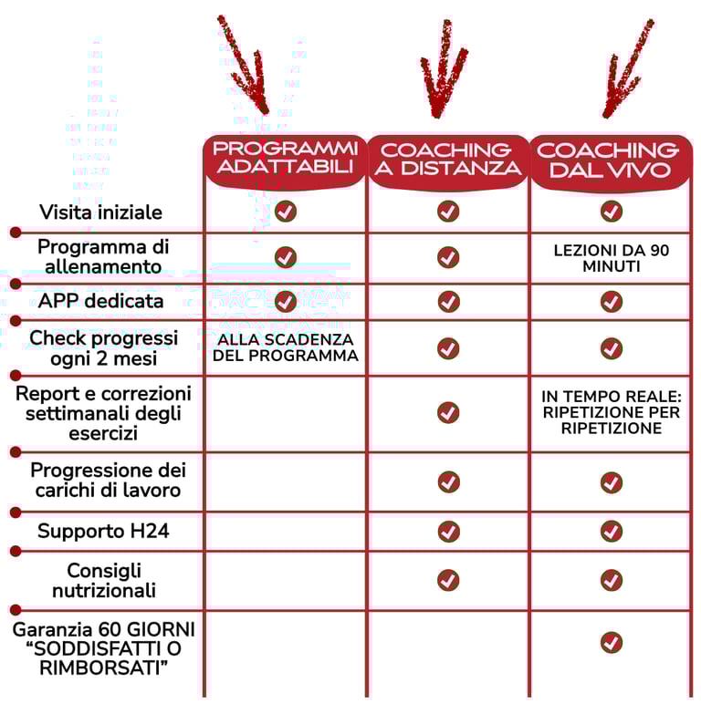 Ovviamente, essendo il percorso interamente gestito da me: programmazione, indicazioni alimentari, progressione ecc... mi prendo la completa responsabilità del tuo percorso, perciò sarebbe un mio fallimento ed è giusto rimborsarti fino all'ultimo centesimo.